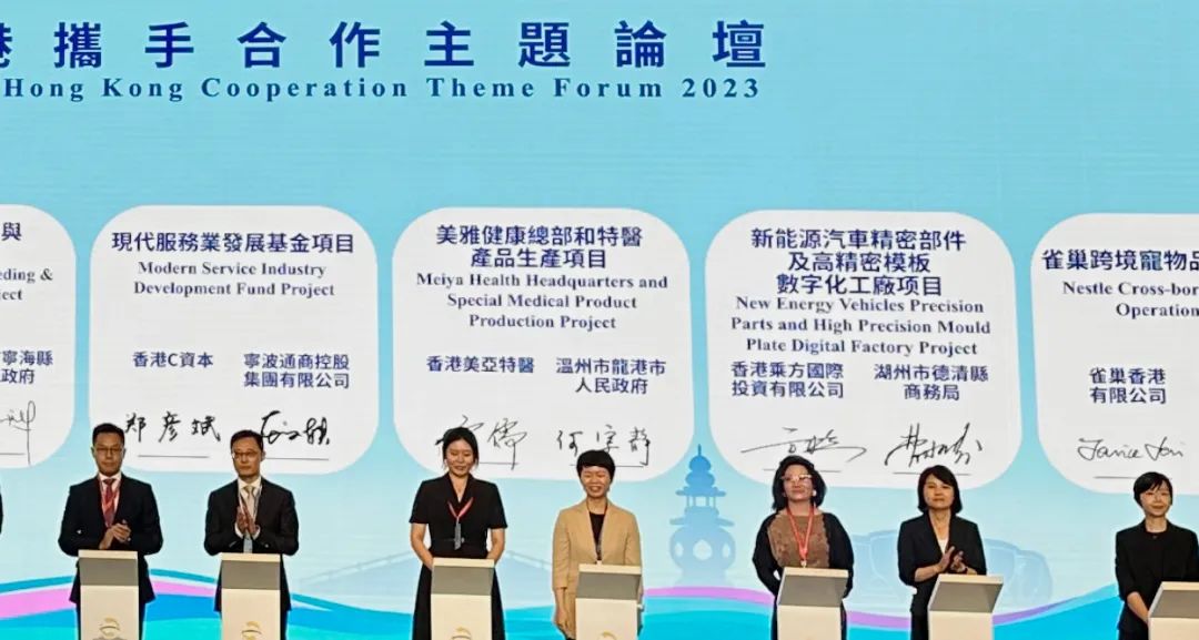 在開幕式簽約儀式上,香港特區(qū)政府政務(wù)司司長陳國基與浙江省副省長盧山簽署《香港特別行政區(qū)政府、浙江省人民政府共同推進(jìn)高質(zhì)量發(fā)展合作協(xié)議》。兩地政府部門和機(jī)構(gòu)也簽署投資推廣合作、教育合作、馬術(shù)運(yùn)動(dòng)3個(gè)范疇的合作備忘錄。