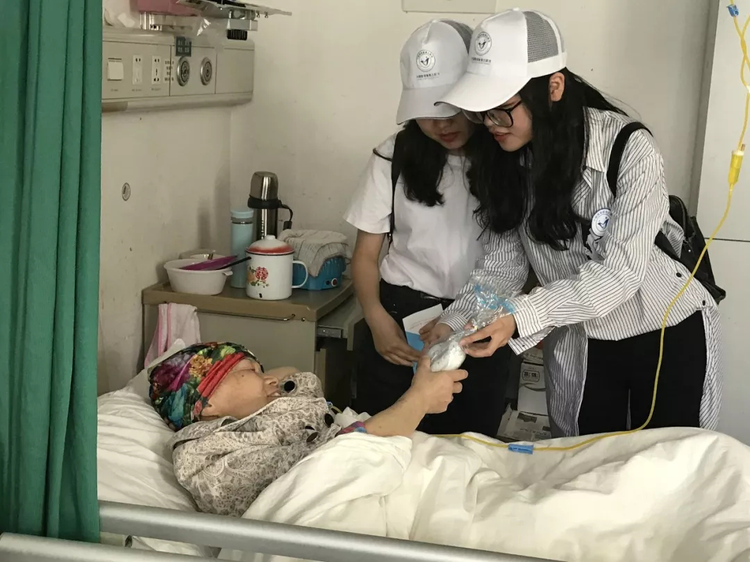 在付振明教授等醫(yī)務(wù)人員的引領(lǐng)介紹下,志愿者團(tuán)隊(duì)實(shí)地接觸到腫瘤患者及家屬,圍繞患者病情發(fā)展情況,為患者提供了營(yíng)養(yǎng)學(xué)方面的科學(xué)建議,給患者贈(zèng)送了愛(ài)心小禮品。